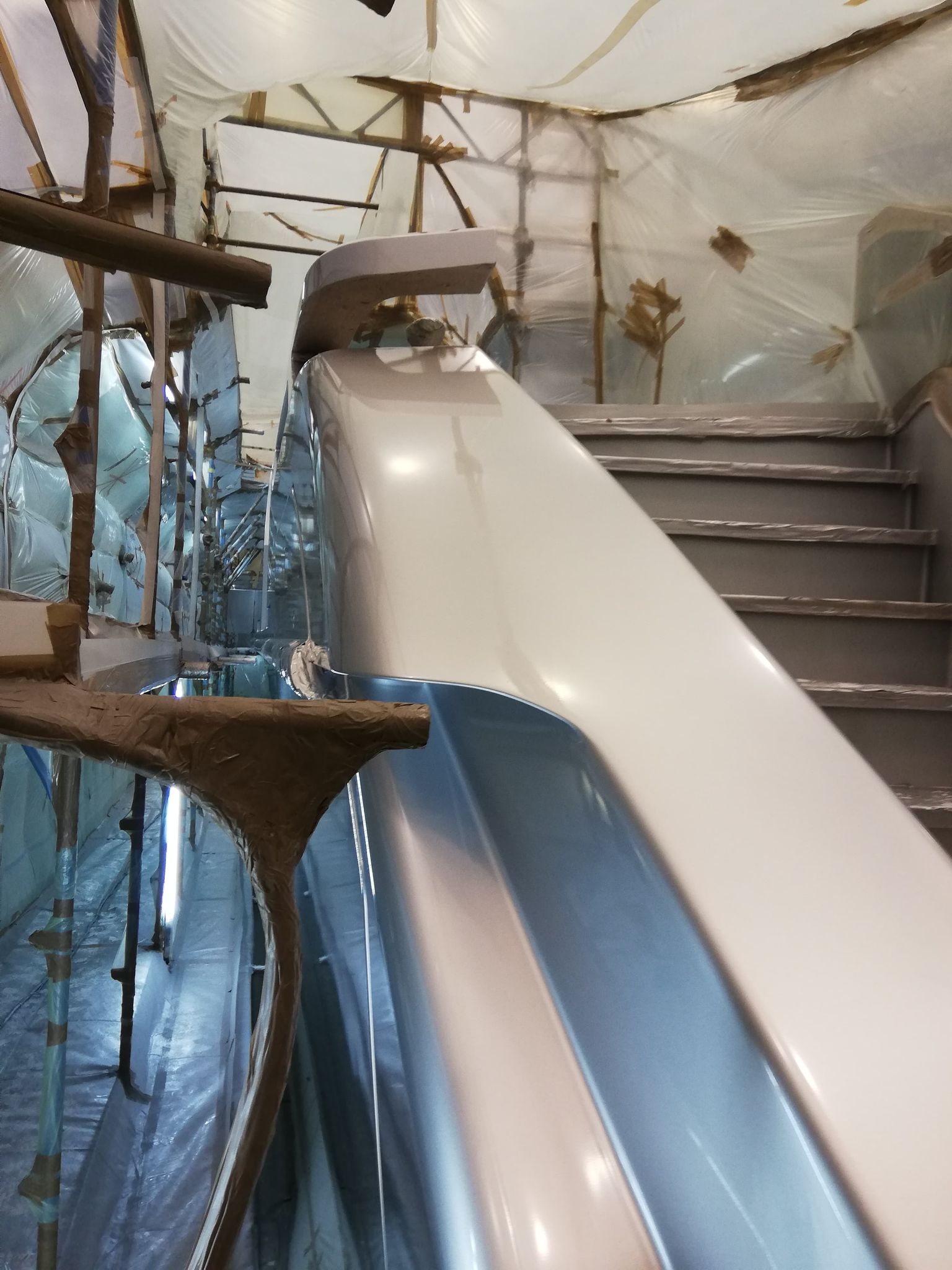 For the painting of the boats we use electric paint guns, SATA and DEVILBISS with a combination of colors such as AWL GRIP, ALEXSEEAL, JOTUN, DUPONT MARINE for a reliable result.